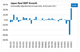 根据日本政府8日公布的第三季度经济数据,第三季度日本实际GDP环比上升5.3%,这被看作是经济下跌后的恢复性增长。