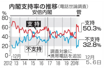 12月底,菅义伟政府成立即将满100天,这段时间被日本媒体形容为民众宽容度较高的“蜜月期”。但根据最新民调显示,目前菅义伟内阁的支持率已跌至50.3%,较上个月下降了超过10个百分点。55.5%的调查对象认为政府的防疫措施不够充分,76.2%的调查对象认为,政府应优先考虑防控疫情而不是刺激经济。