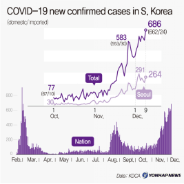 12月8日,韩国再次上调了全国的防疫响应级别,其中首都圈从2级上调至2.5级,仅次于最高级别3级。