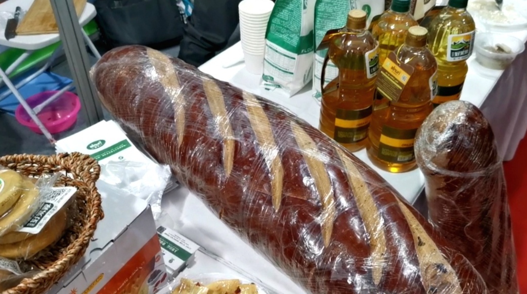 新疆大列巴也是近年来非常火的“网红”美食,在展示区,两个长1.2米、重达1公斤的黑金列巴吸引不少市民围观。“我们带了黄金列巴和黑金列巴两种产品,这两个巨型黑金列巴主要是为了展示。”新疆艾力努尔馕文化科技有限公司总经理迪力夏提向记者介绍,黑金列巴是由黑荞麦制成,更适合老年人食用,而黄金列巴更受年轻人喜欢。