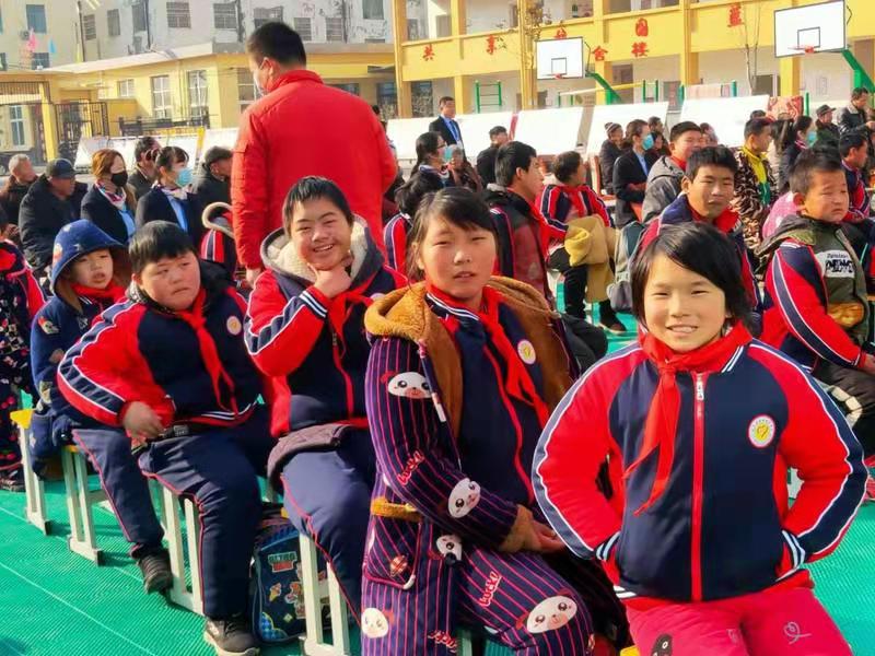 上午10时,伴随着庄严的国歌声响起,捐赠仪式正式开始。鹿邑县特殊学校的孩子们早早地等在操场上。“这些孩子虽然和正常孩子不太一样,可他们心里也懂得感恩,知道有人来捐赠物品,都开心坏了。”鹿邑县特殊学校的一名老师说。