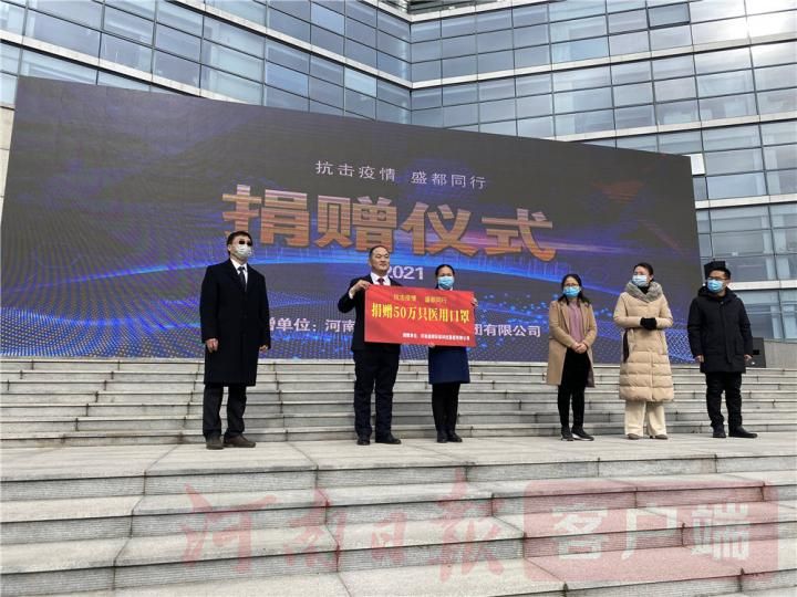 河南盛都科技集团董事长许玉龙当场将50万只口罩捐赠给洛阳高新技术产业开发区管委会,用爱心守护人民生命健康安全。