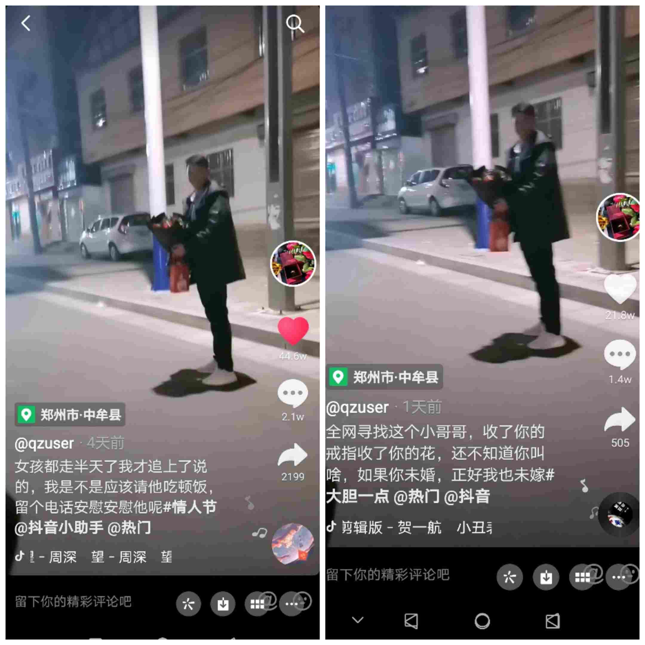 “乍一看,感觉这事儿落寞中透着温暖,也让人多了几分美好期许,我特意关注了对方的抖音号。”2月19日,因为朋友圈有人转“全网寻找送花的小哥哥”视频,郑州市民李女士也跟着关注此事。