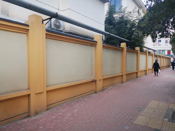 做法:文化墙前方被隔起栅栏,2年已过去诗意如故