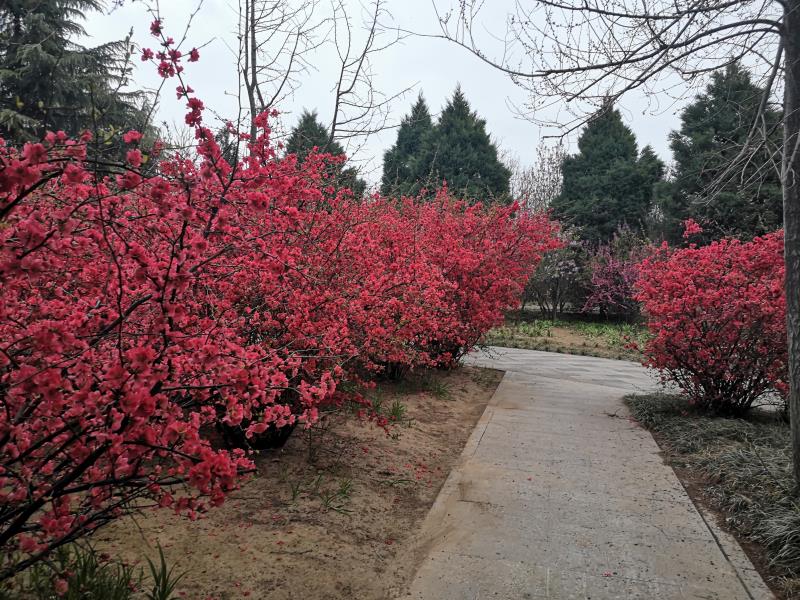 在中州大道红专路站台旁的海棠花,火红的颜色,就像孩子们的笑脸,稚嫩又可爱。远远观望,犹如彤云密布,欣欣向荣,美不胜收。