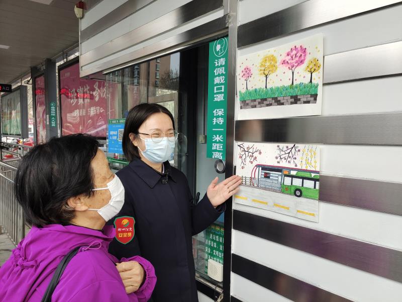 在大学路BRT站台进站口工作间的玻璃窗旁,站务长小姐姐亲手绘制的春色美景,引来了不少乘客频频驻足。