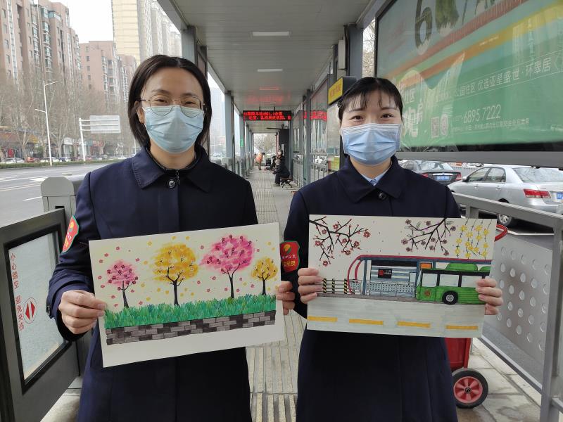 原来,这是郑州快速公交一群爱好绘画的站务长小姐姐们为了给市民乘客带来春天的气息,让大家感受春的味道,特意将站台周边争奇斗艳的花朵“复制”到站台里,绯红色的樱花极其美丽,让大家在乘车的同时感受到“生活像花儿一样”,处处洋溢着欢乐与幸福。