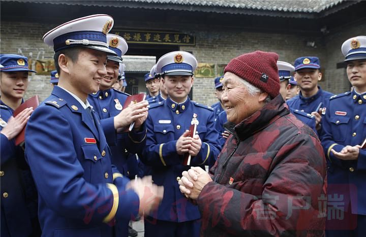 3月26日,尉氏县消防救援大队全体指战员在认真聆听王小妹讲述回忆焦裕禄在尉氏工作时的感人事迹。