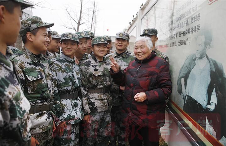 3月17日,曾与焦裕禄一起工作过的王小妹在尉氏县武装部训练基地给预定新兵讲当年焦裕禄在尉氏工作时的感人事迹。