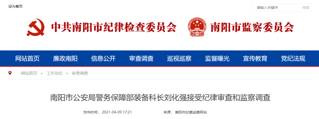 南阳市公安局警务保障部装备科长刘化强接受纪律审查和监察调查
