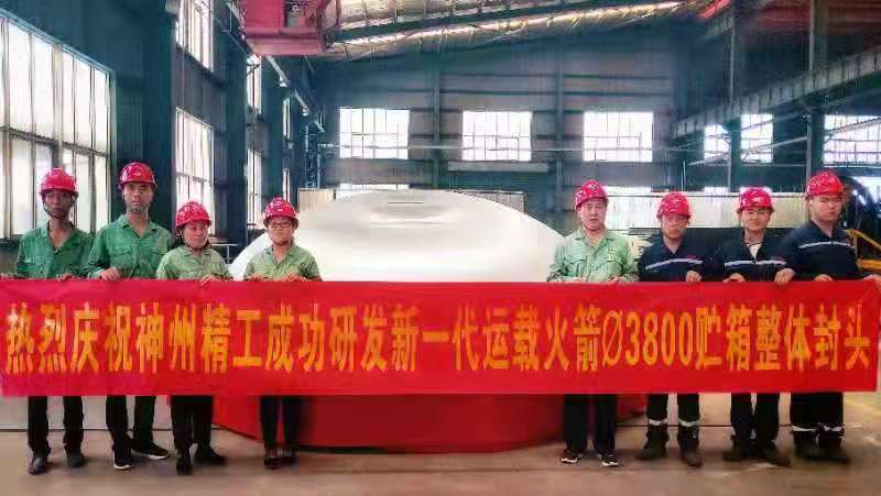 2020年4月,神州公司采用“两步法”旋压成型技术,为中国新一代大型火箭生产直径3800mm,材质为2219的铝合金贮箱箱底专用封头。