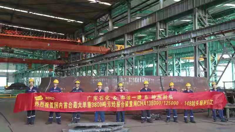 2020年7月,神州公司造出的直径13800mm、厚度104mm的椭圆封头,成为中国与委内瑞拉合资建设广东石化2000万吨/年重油加工工程中的关键设备,整体装置高度为115米,重达3800多吨,是目前国内同类设备中最重的塔器。