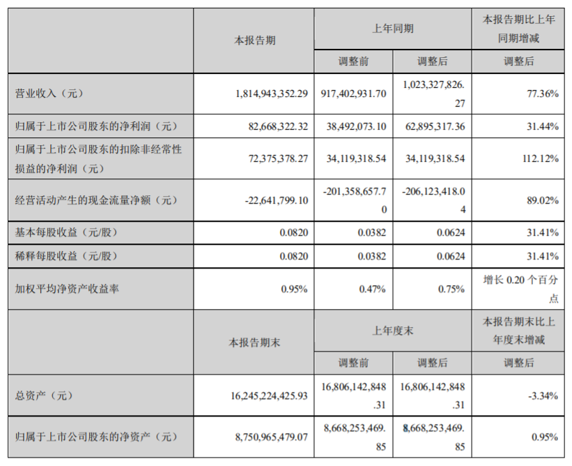 【大河财立方消息】4月26日晚间,许继电气发布2021年第一季度报告,报告期内,公司实现营业收入18.15亿元,同比增长77.36%;归属于上市公司股东的净利润为8267万元,同比增长31.44%;基本每股收益0.082元,同比增长31.41%。