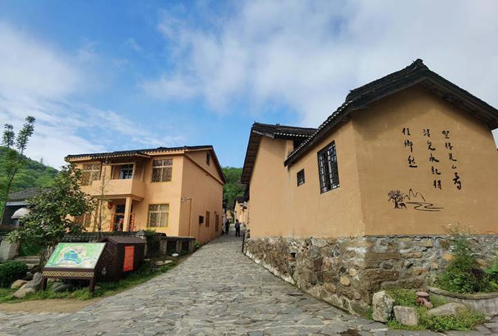 相比远山含黛,青草池塘,村里土坯墙体的斜顶瓦房,更显自然清雅。走在青石铺就的石板路上,绿意乡情不自觉涌上心头。