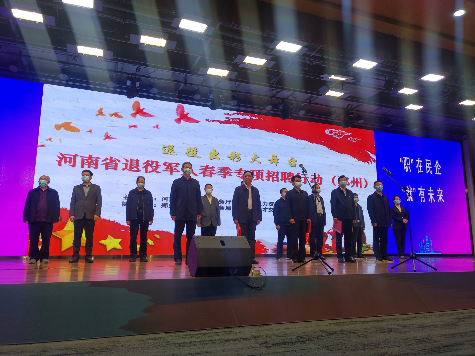 大河网讯(记者 何心悦)退役军人如何在事业上找到自己的舞台?这场招聘会提供了不少机会。4月27日,省退役军人事务厅在郑州启动了“退役出彩大舞台——河南省2021年度退役军人春季招聘会”,来自全省各地的1500余名退役军人和军属,100家民营企业、退役军人创办企业代表参加了开幕仪式。