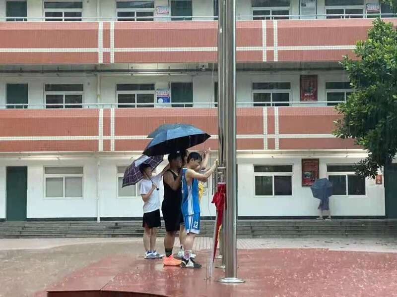 合肥大雨中感人一幕:6名中学生抢收国旗