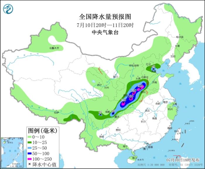 据中央气象台预计,7月11日08时至12日08时,华北中南部、黄淮北部等地有大到暴雨,其中,山西东部、河北中南部沿山一带、河南北部等地部分地区有大暴雨(100~200毫米)。