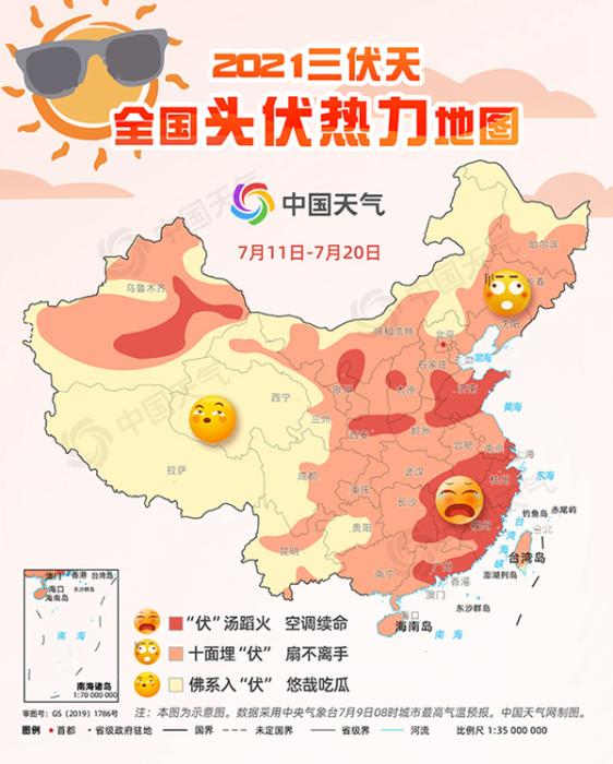 中国天气网气象分析师张娟介绍,今年头伏期间(7月11日至20日),在南方,如浙江、江西、湖南东部、安徽南部等地,将会持续闷热,最高气温基本在35℃以上,真正进入到了“上蒸下煮”的连续桑拿天模式。