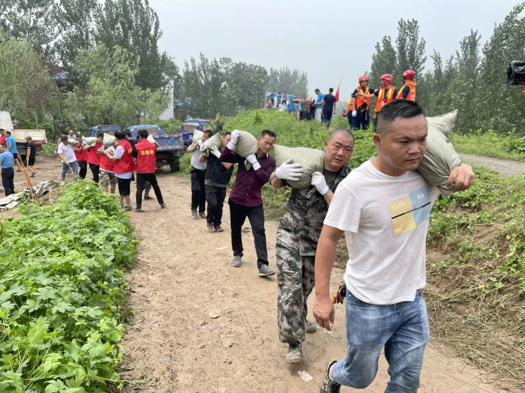 现场直击!长葛市南席封堵决口:一个个肩膀筑就“抢险长城”!