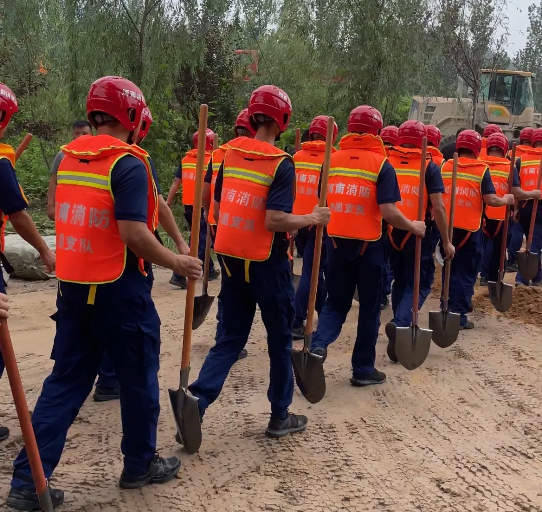 南席这处决口共有140余名救援官兵,包括河南许昌消防支队的90人和湖北消防襄阳支队的50余人。这批“兵哥哥”与来自坡胡、增福、长兴等辖区的民兵应急突击队、镇村干部、党员群众们一起,承担沙石的装袋与搬运工作。
