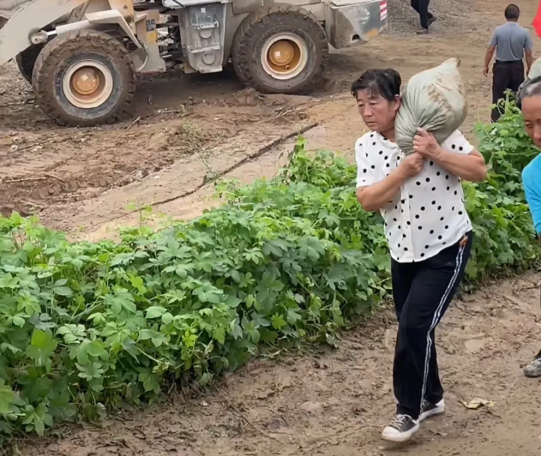 “咱是党员,听说南席有难,我就跟着镇干部们一起来了。党员就是得冲锋在前,为家乡作贡献!”坡胡镇侯庄村的朱宝莲今年59岁,但扛起沙袋来丝毫不输男儿,几分钟的时间就搬运了三趟。