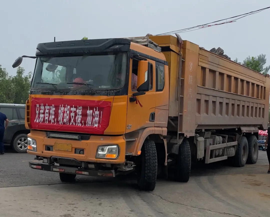 为了支援南席,坡胡镇除了安排抢险队伍支援一线外,还提供了3车石头、8车沙子、16车石子等抢险物资。正像坡胡镇物资车上写的那样:“兄弟有难,坡胡支援!”