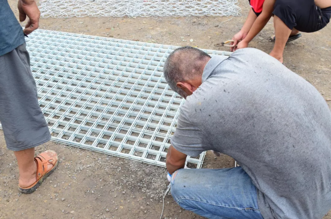 现场组装“格宾网”的工人队伍,是由来自马武村紧邻的前集村与马武村村民一起组成。“早上八点就来了,为了家乡财产不受损失,我们必须加快进度!”一位村民一边组装格宾网一边介绍。
