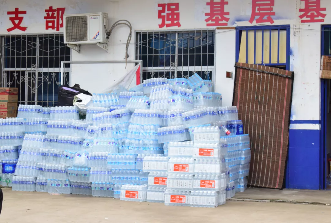 短短两个小时,村委会办公室的门口处已经摆满了矿泉水,足有一人多高。