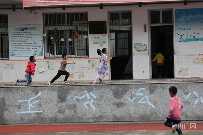 孩子们在淳安县浪川乡双源中心完小玩耍(央广网记者魏炜 摄)