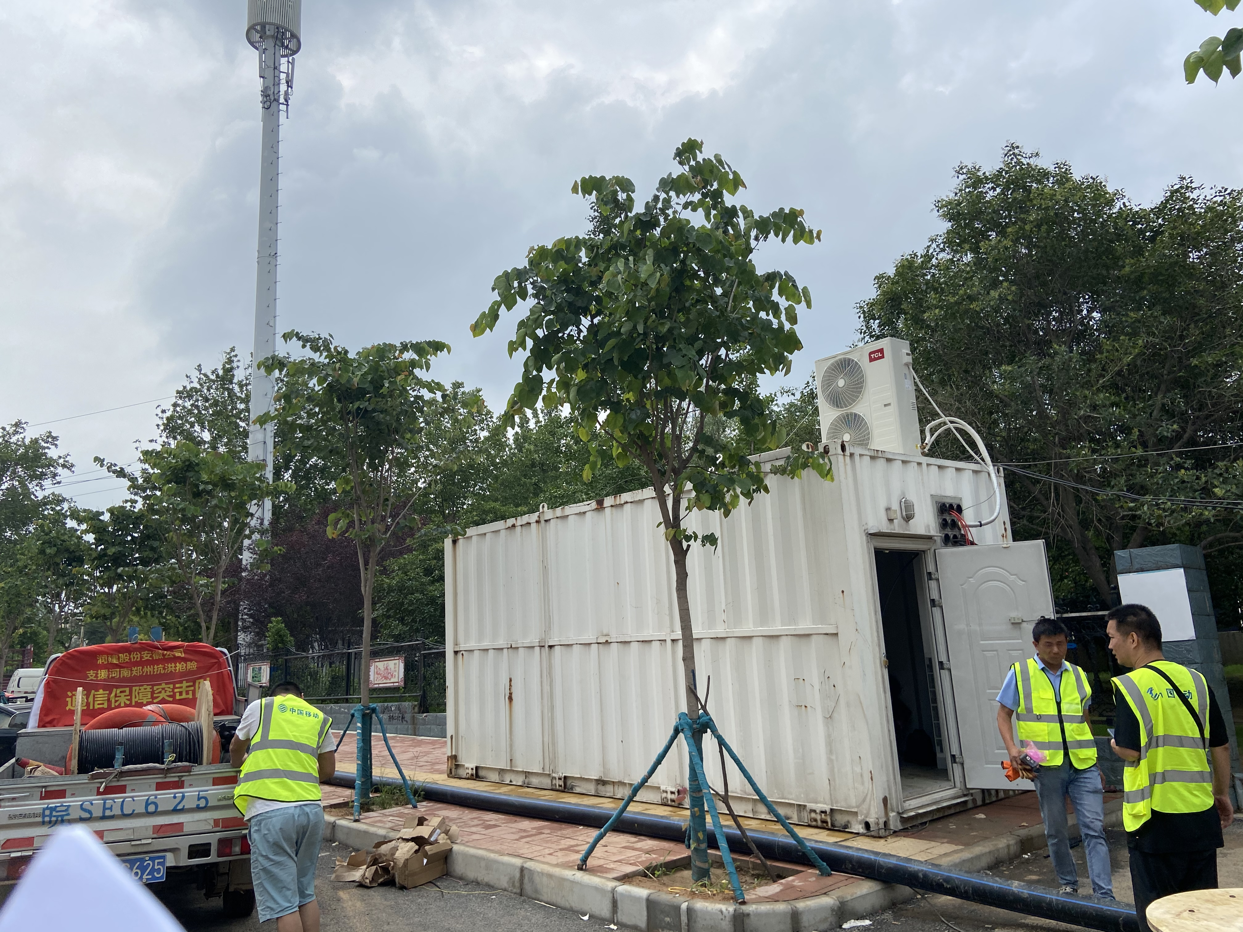 “我们根据需要,在受灾严重的地方通过搭建装甲机房,组建临时机房,快速恢复网络通信。”中国移动河南公司郑州分公司相关负责人介绍,此次救援中,由于巩义市米河镇洪水太大,核心机房被冲毁,急需恢复通信网络。郑州分公司及时建设了铁甲机房,这里承载着汇聚机房的作用,金属材质的活动板房,更加灵活便捷,运送到指定位置后,能快速安装设备,即可投入使用小型基站。