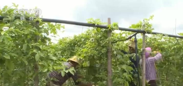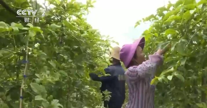 走进江那镇铳卡村百香果种植基地,工人们正穿梭在藤蔓间,精心采摘着成熟的果子。