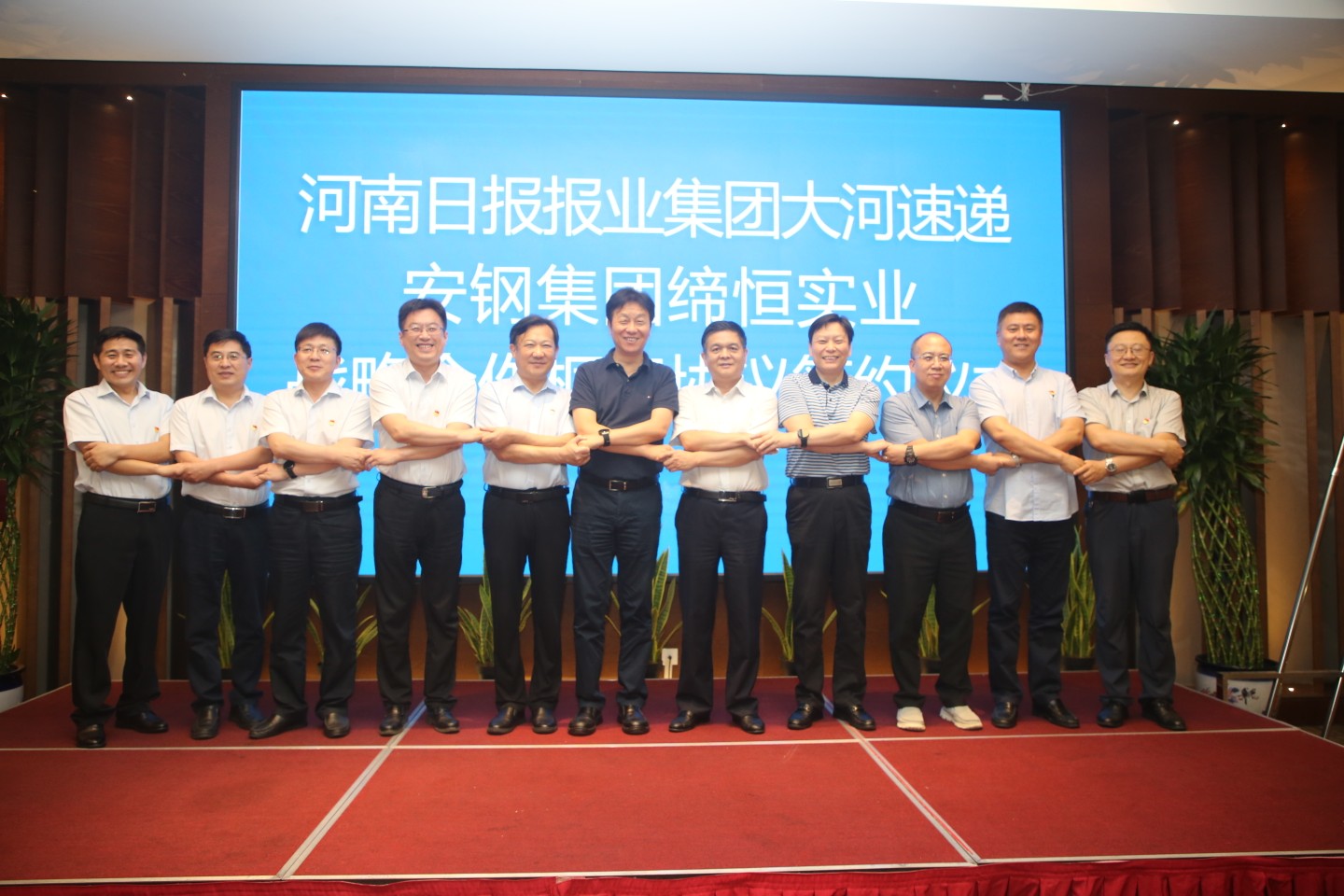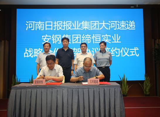 大河网讯(记者 祝传鹏) 9月10日上午,河南日报报业集团大河速递公司与安钢集团缔恒实业公司在郑州安钢大厦签署战略合作协议。根据合作协议,双方跨界“联姻”后,将发挥各自的资源优势,在宣传推广、产业应用、人才培养、技术研发等领域建立全面战略伙伴关系。