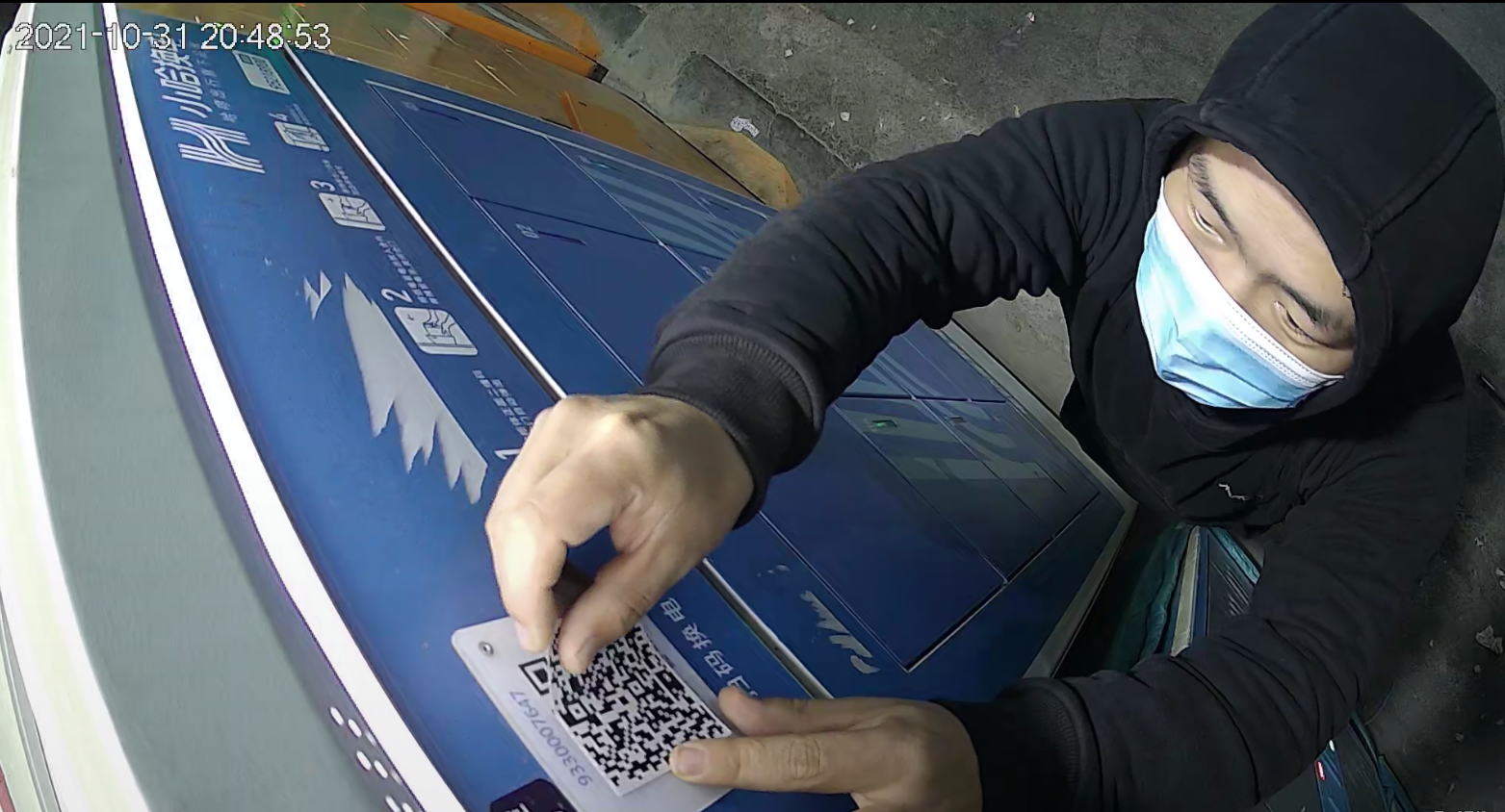 换电公司申经理调出了换顶柜的监控画面,发现在10月31日晚上8点左右,一个戴着口罩的男子,将一张二维码贴在了换电柜官方二维码上,然后在柜门上贴了几张小广告。申经理告诉记者,“我们已经把这些小广告全部清除,换电柜均可正常使用。同时也保留了证据,下一步将通过法律手段维权”。