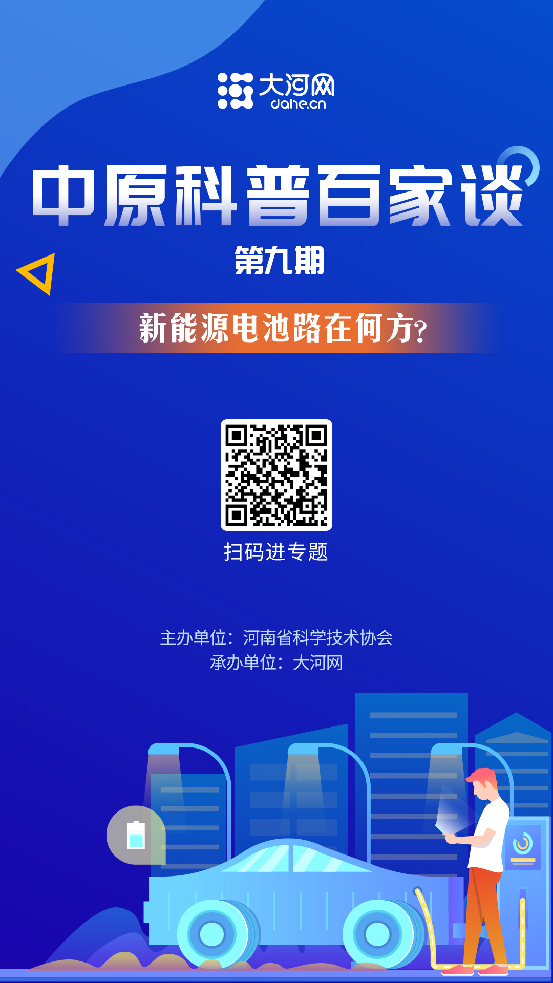 大河网讯(记者 刘杨)随着环保意识的增长以及限行的刚性需求,我们身边的新能源汽车越来越多,新能源汽车的核心是电池,目前,新能源汽车电池的生产和使用现状如何?安全性怎么样?未来发展方向是什么......由河南省科协主办,大河网承办的中原科普百家谈第九期,带你探讨新能源电池的那些事儿!