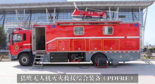 “猎鹰”从立项之初就是一套系统工程,不仅研发适应灭火救援作战和抢险救援作业需要的无人机平台,还将灭火装置、救援装置、承载运输车辆进行一体化集成和模块化设计。车上还有操控仓,可进行无人机超视距飞行,通过5G通讯与指挥中心远程实时联网,不仅时刻掌握飞行器动向,还可为培养飞手提供详尽的数据支持。