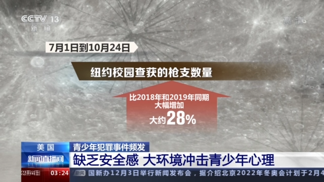 美国媒体报道说,以纽约为例,7月1日到10月24日,纽约校园查获的枪支数量比2018年和2019年同期大幅增加了大约28%。电击枪、胡椒喷雾、指节铜环等查获的数量增加幅度更大,其中查获电击枪的数量已经比2018年和2019年全年增加了多达6倍。