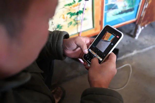 12月8日,在辽宁省大石桥市建一镇松树村,张同学在家中剪辑视频。