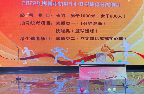 12月17日上午,2022年郑州市初中毕业升学体育考试统考项目抽号举行。经现场抽号,统考项目确定为:1分钟跳绳+篮球运球。
