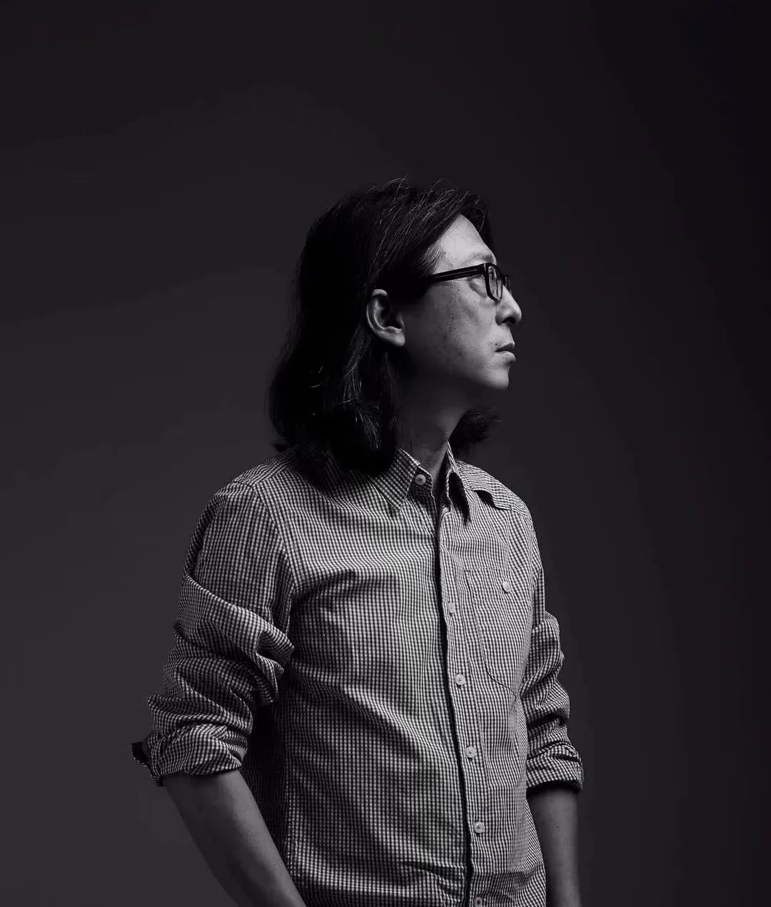 1970年出生的他,一头黑白夹杂的长发,戴一副黑框眼镜,穿皮衣牛仔裤,手上叼一支烟,神情严肃、眼神深邃。