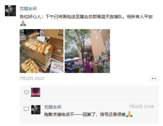 暴雨后,老梁把店里现有的300个面包送到救援队/老梁供图