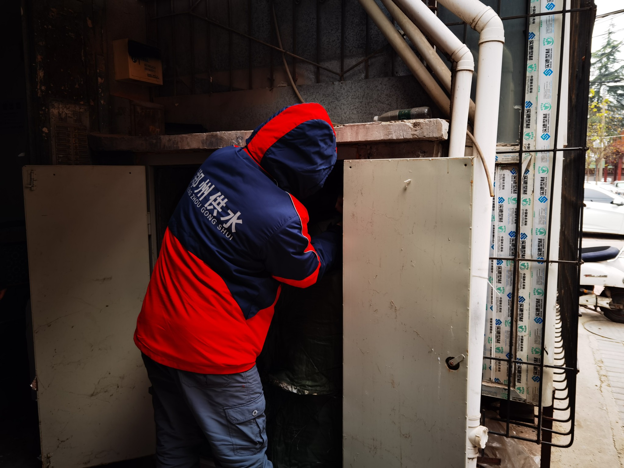 随后,记者跟随郑州自来水公司营业处的抢修队员来到位于西站北街的西站路8号院,看到抢修人员正在查看这里的水表水管防冻情况,为一处立式表井盖上厚厚的棉被。