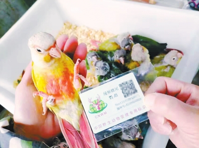 当前,全国首批人工繁育鹦鹉佩戴“中国野生动物管理专用标识”试点工作正在商丘全面铺开,人工繁育鹦鹉可凭专用标识进行运输和销售。