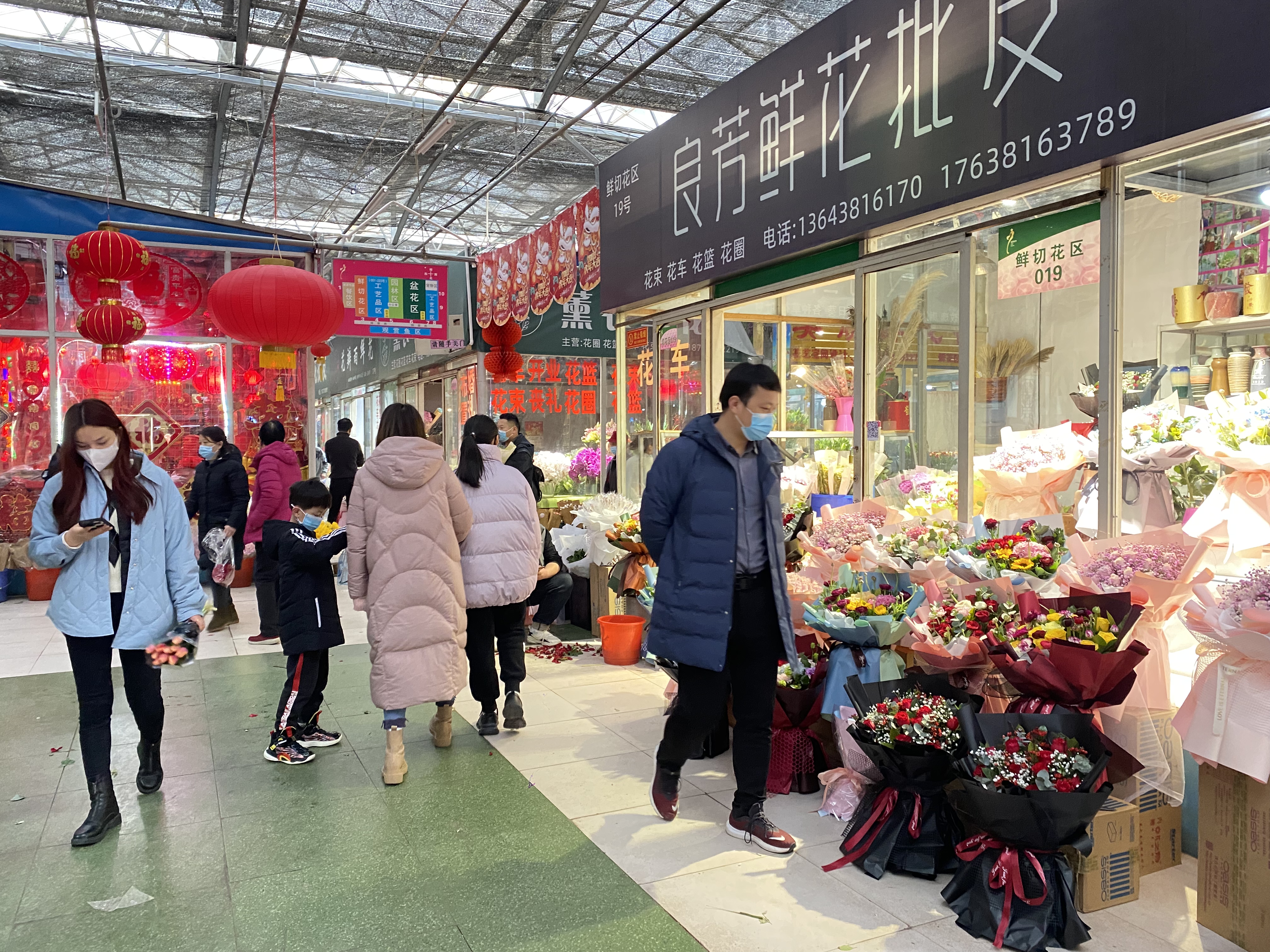 今年鲜花的批发情况如何?市场内一家专门做鲜花批发的老板称,今年鲜花批发量不如往年。“今天市场里虽然人也很多,但是没有去年多,去年过道都是来买花的消费者,相比之下,今年还是有些冷清。而且今年因为花太贵,利润比较薄,批发的人也少了。”