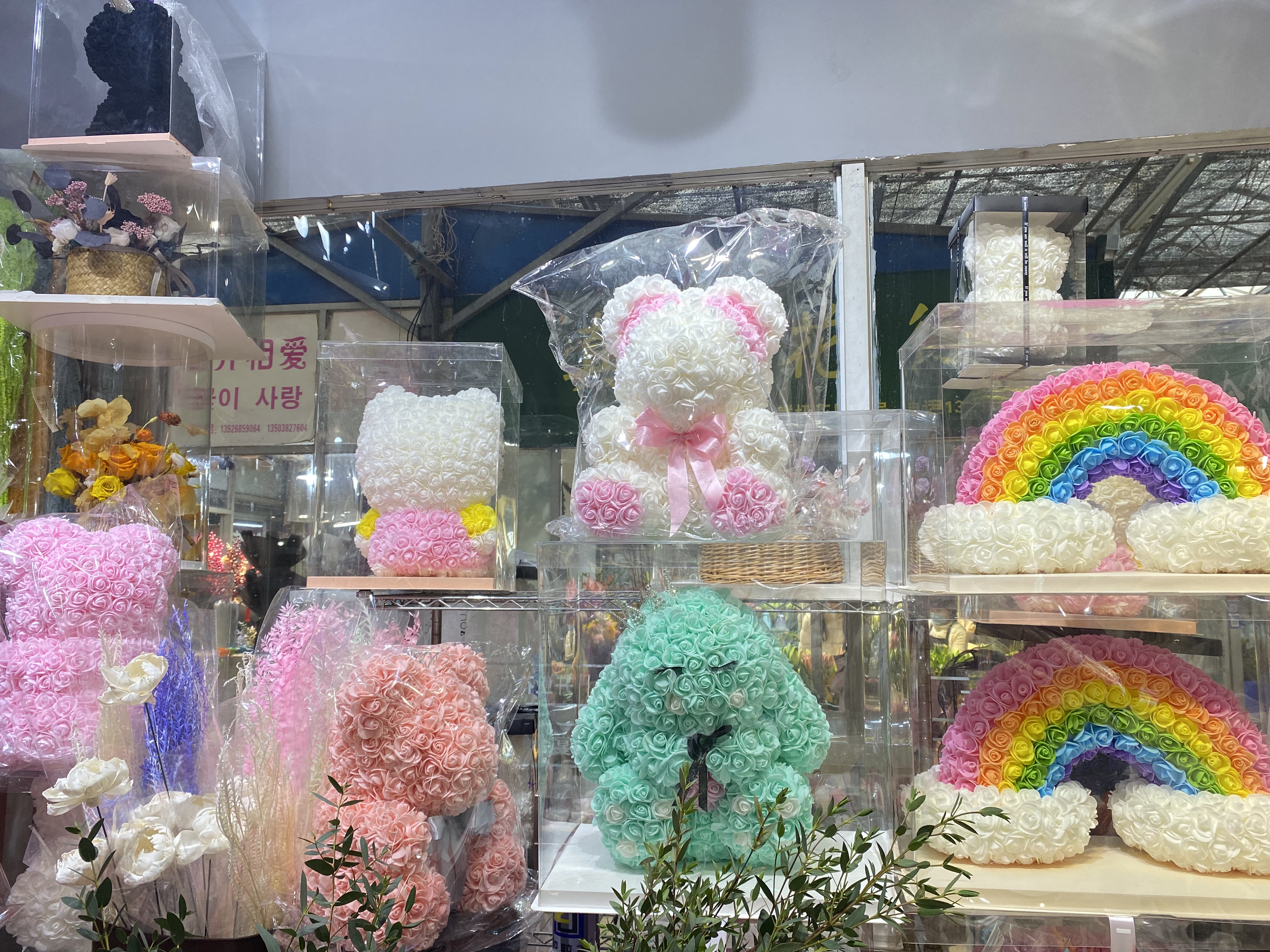 在另外一家专做永生花的花店内,记者看到有独角兽、彩虹、小熊等不同的永生花造型。该花店老板表示,在这些永生花中,“独角兽”造型的卖得最好。此外,粉红色的小熊造型的永生花卖得也很不错。