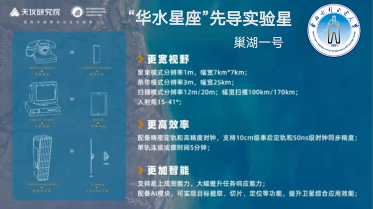 巢湖一号卫星是“华水星座”的实验星,是华北水利水电大学与长沙天仪空间科技研究院有限公司密切合作,联合研制服务水利的InSAR卫星的先导星。华北水利水电大学计划利用该卫星开展水利行业SAR数据应用研究,重点验证卫星的重轨干涉能力以及自主研发的相关软件功能效果,为随后的华水一号卫星的研制和应用提供更加科学的依据。