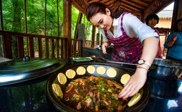 古村美食街,有几十种豫西美味小吃,豫西十大碗、美味地锅炖、手工野菜饺等等,百步闻香、望而垂涎。