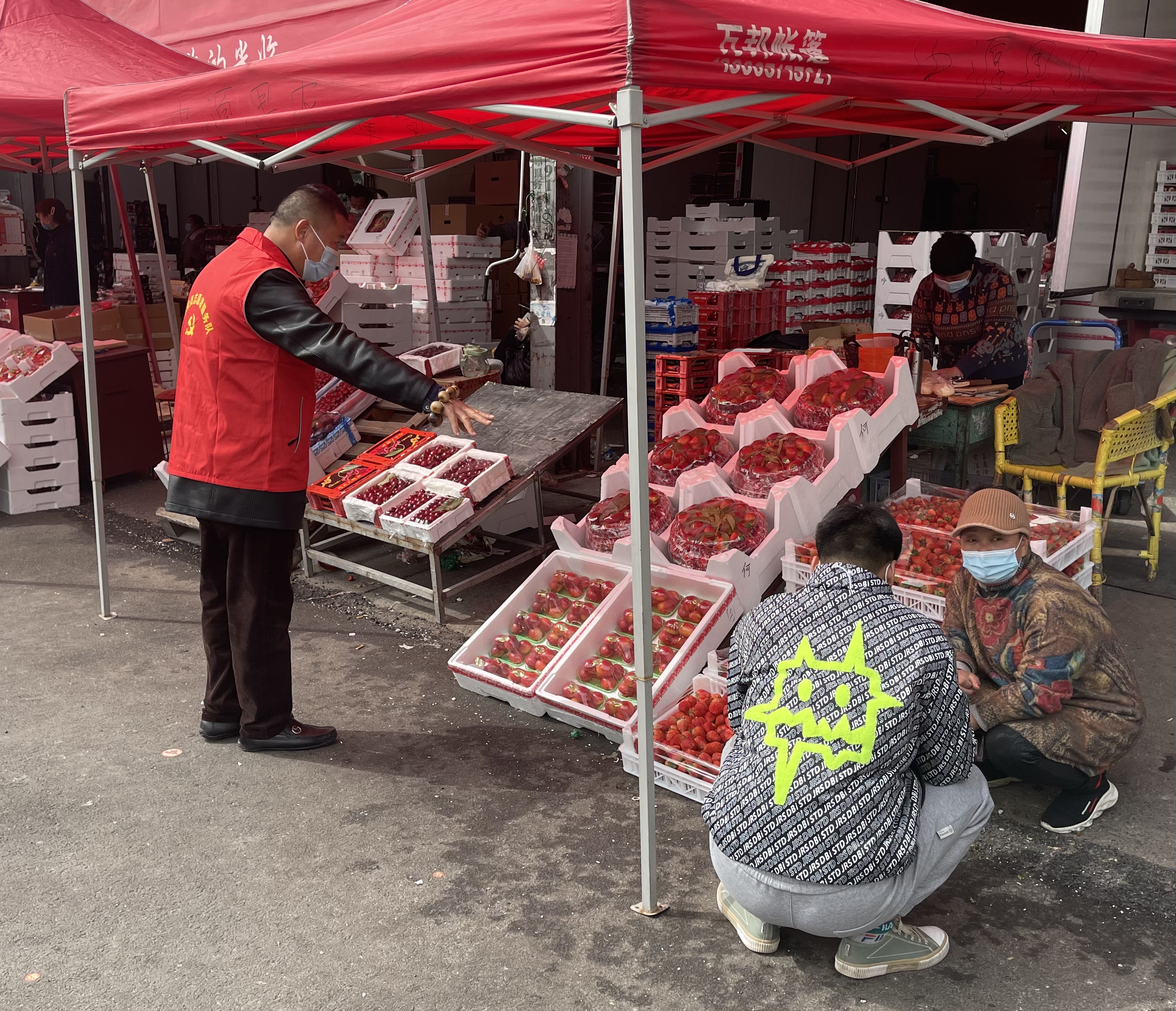 上午10点的万邦市场早已是车水马龙,“请打开健康码,量一下体温。”“戴好口罩,提前扫码入场。”市场入口处的工作人员在紧张有序地对入口车道车辆进行管控。