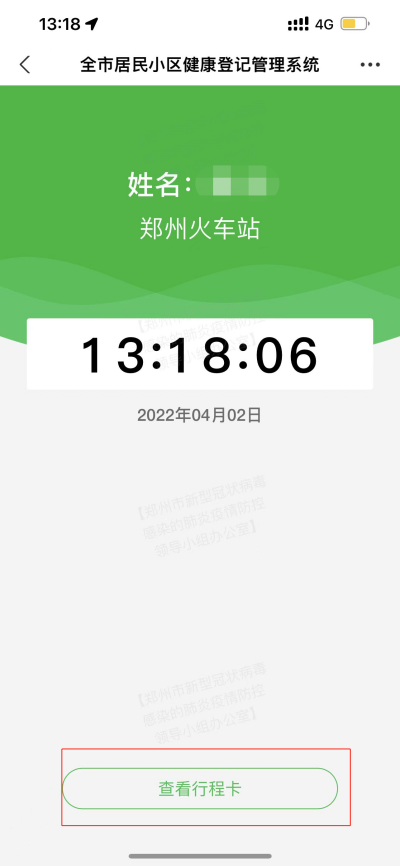 第三步:经工作人员查验后,点击界面下方“查看行程卡”。