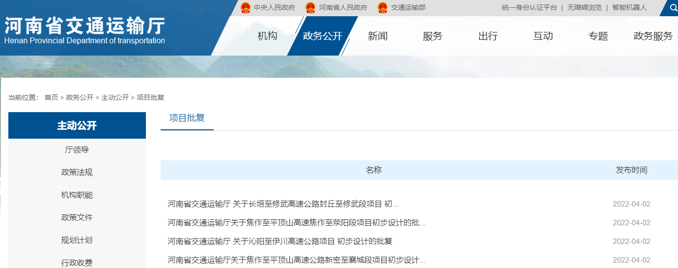 【大河财立方消息】4月2日,河南省交通运输厅批复长垣至修武高速公路封丘至修武段、焦作至平顶山高速公路新密至襄城段、沁阳至伊川高速公路、焦作至平顶山高速焦作至荥阳段等4条高速公路项目初步设计方案,4条高速公路项目总投资约544.42亿元。