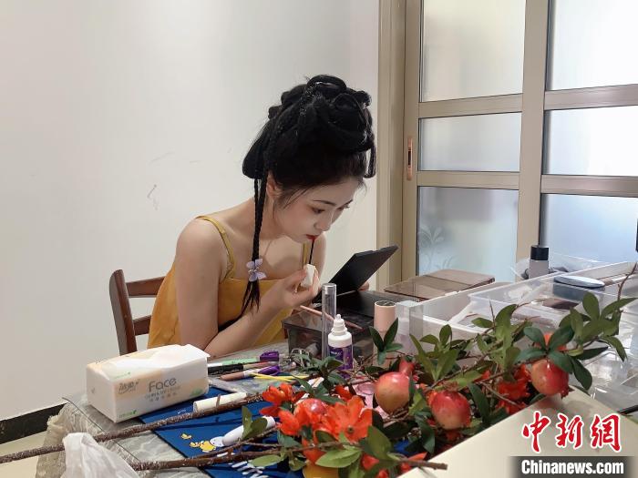 图为梳妆完毕的“石榴花神”常鏸文。 受访者供图